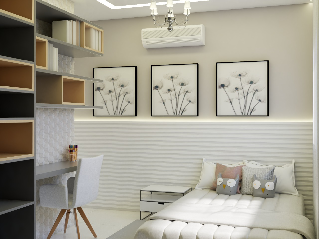 Uma boa dica em relação às cores é deixar o quarto com cores neutras, dando cores mais vivas aos objetos de decoração.. Cortinas, tapetes, prateleiras e objetos como luminárias, quadros, entre outros.